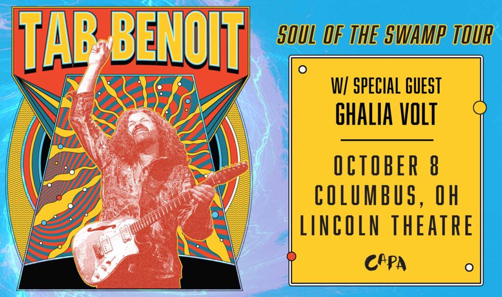 On the Soul of the Swamp Tour, Tab will take you on a musical journey, performing songs from his vast catalog and digging deep into the rich tones and storytelling lyrics that have made him an admired figure in the music world. True to his authentic style, Tab performs without effects—just a guitar, a cord, and an amp—allowing the magic of his music to shine through his hands, fingers, and his band.